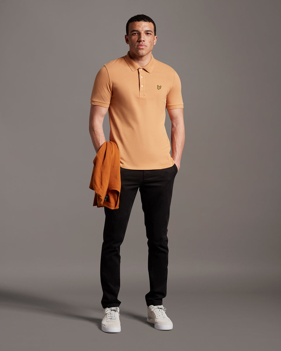 コットン100%を使用したレギュラーフィットのポロシャツはキレイめからカジュアルまで幅広く着こなせる優秀アイテムです。左胸にはゴールデンイーグルのワッペン付き。