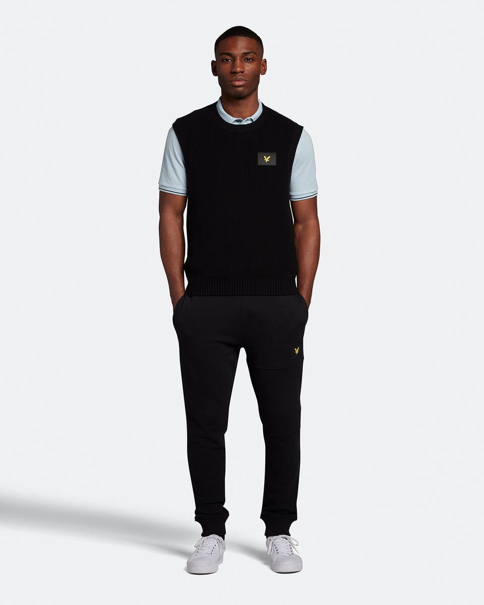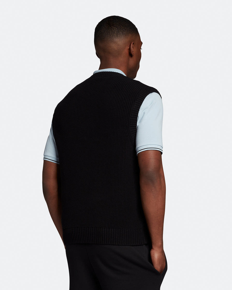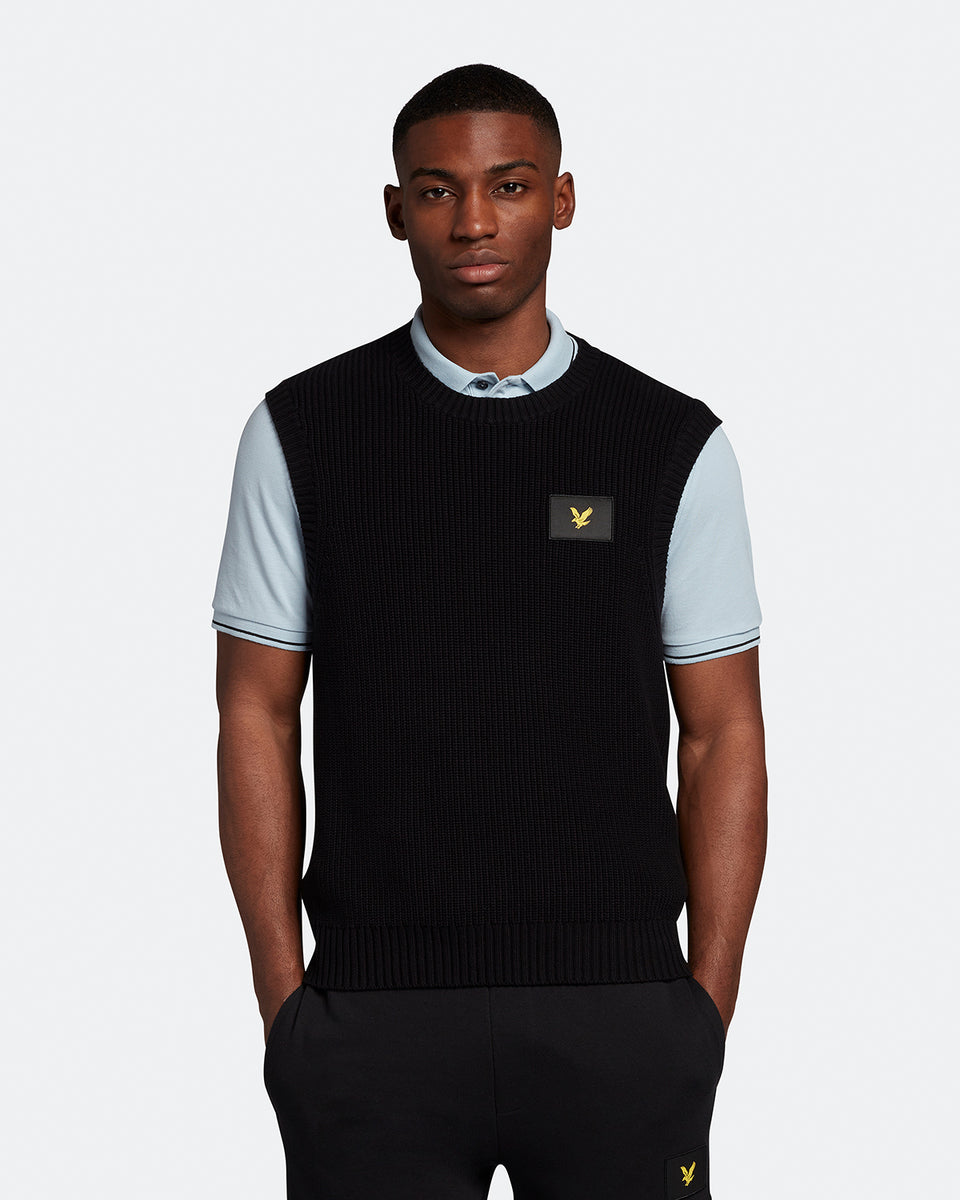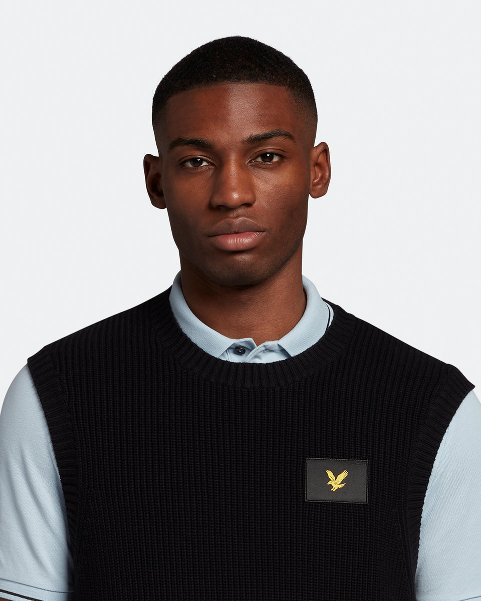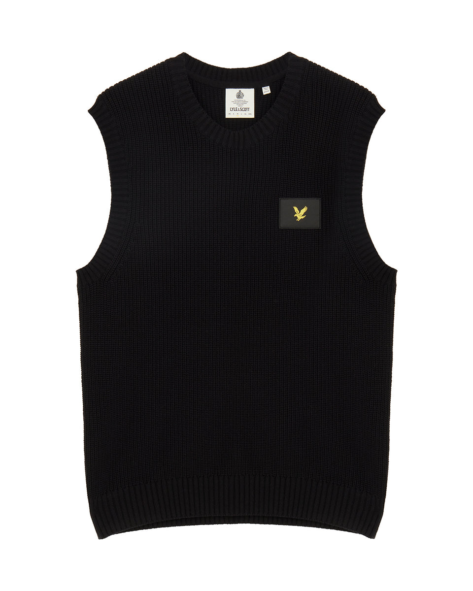 コットン100%の柔らかで着心地の良いニットベスト。胸元にブランドの象徴であるイーグルワッペンが施されポイントになります。