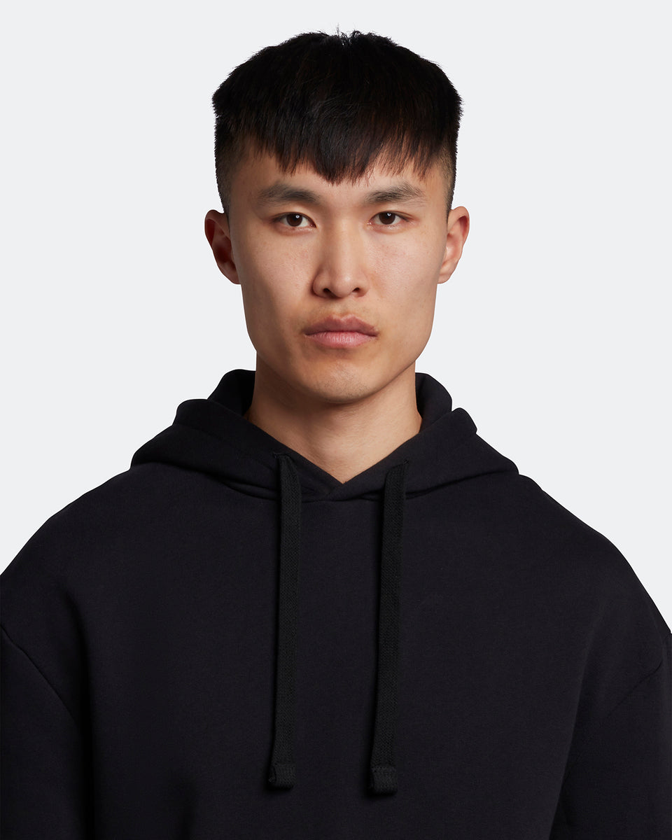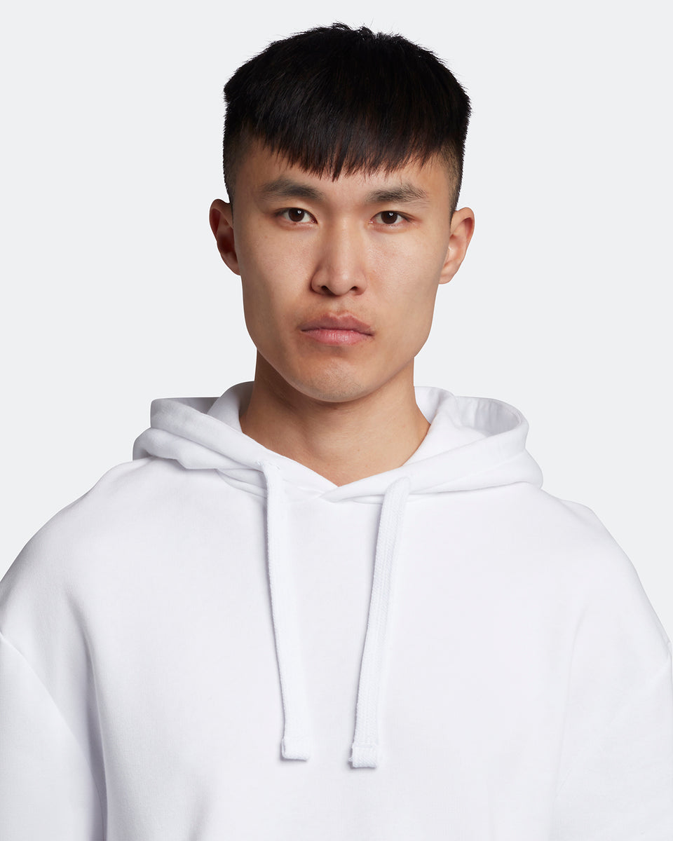 大きめのポケットと太いフード紐が特徴のドロップショルダーパーカーです。オーガニックコットン100%を使用しています。