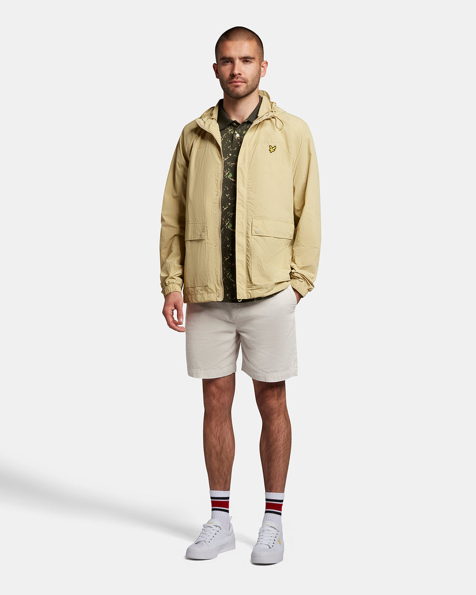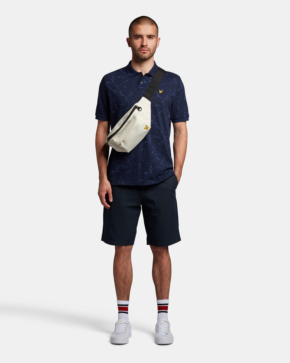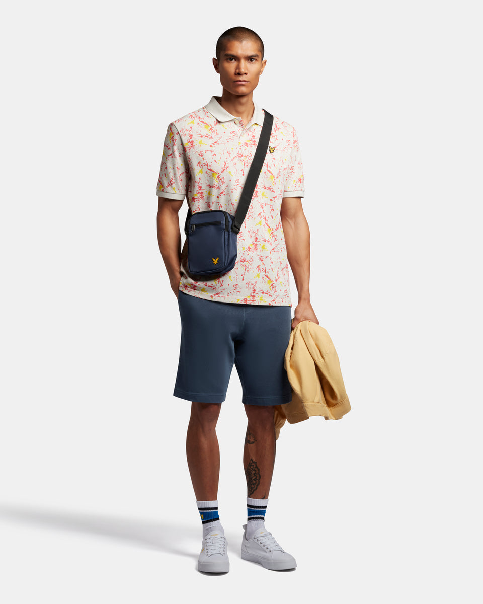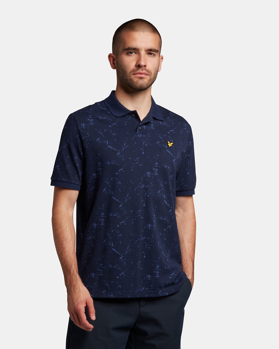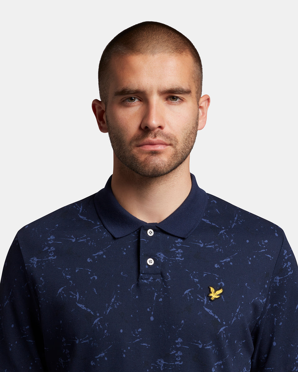 スプラッタープリント加工を施したポロシャツは襟と袖に無地のリブを採用。軽装シーズンの単調なスタイルに変化をもたらしてくれます。