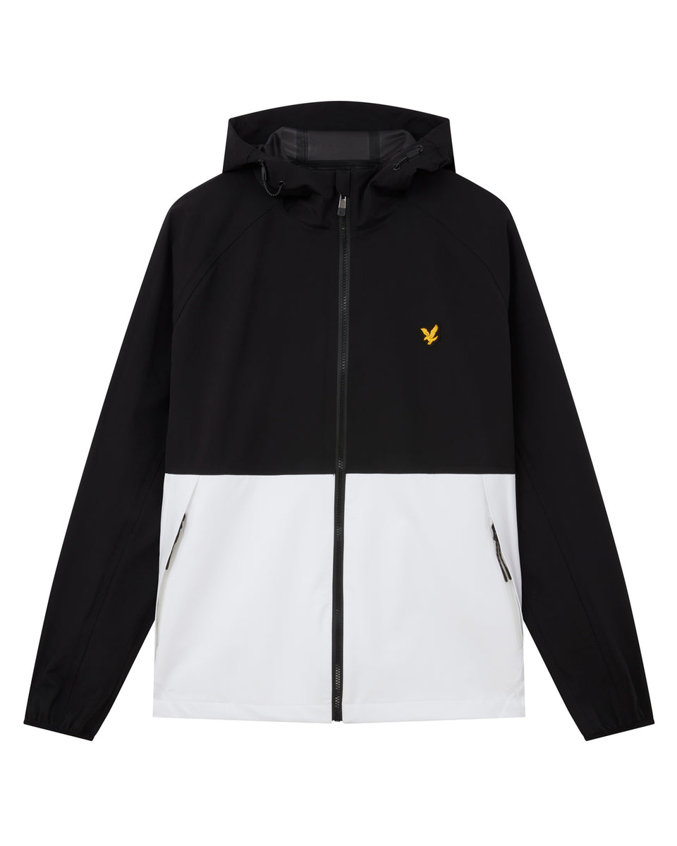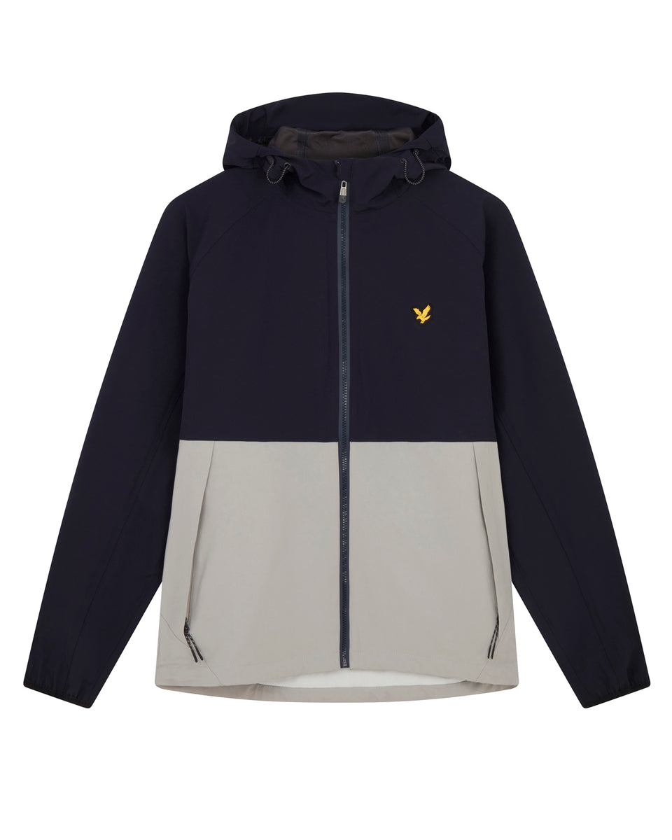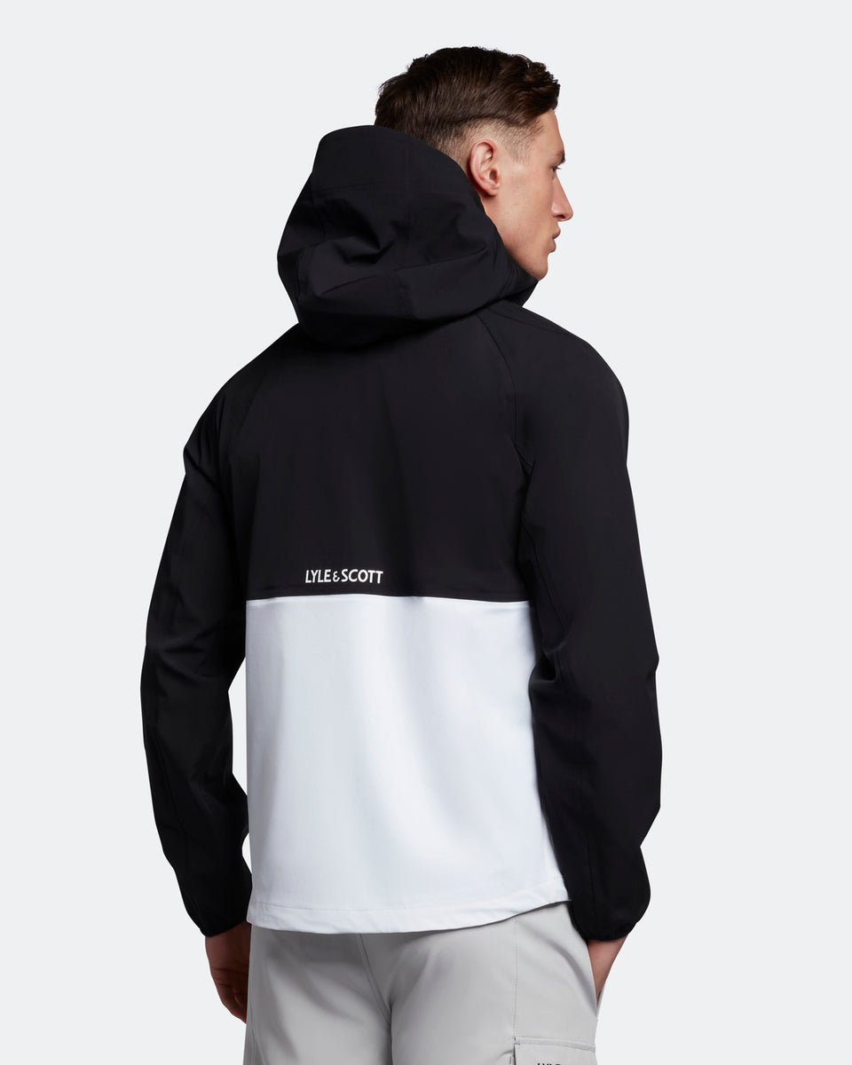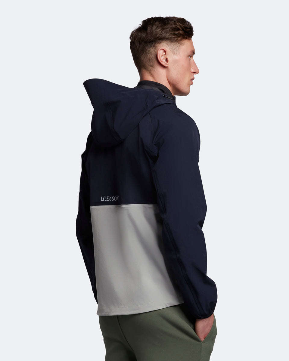 バイカラーのジャケットはアジャスタブルフードでフィット感を高めます。両サイドには大きめなジップポケットを配し、収納力も高いデザインに。バックの中央にブランドロゴプリントを施しています。