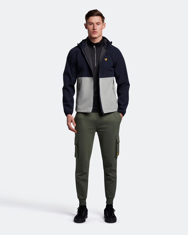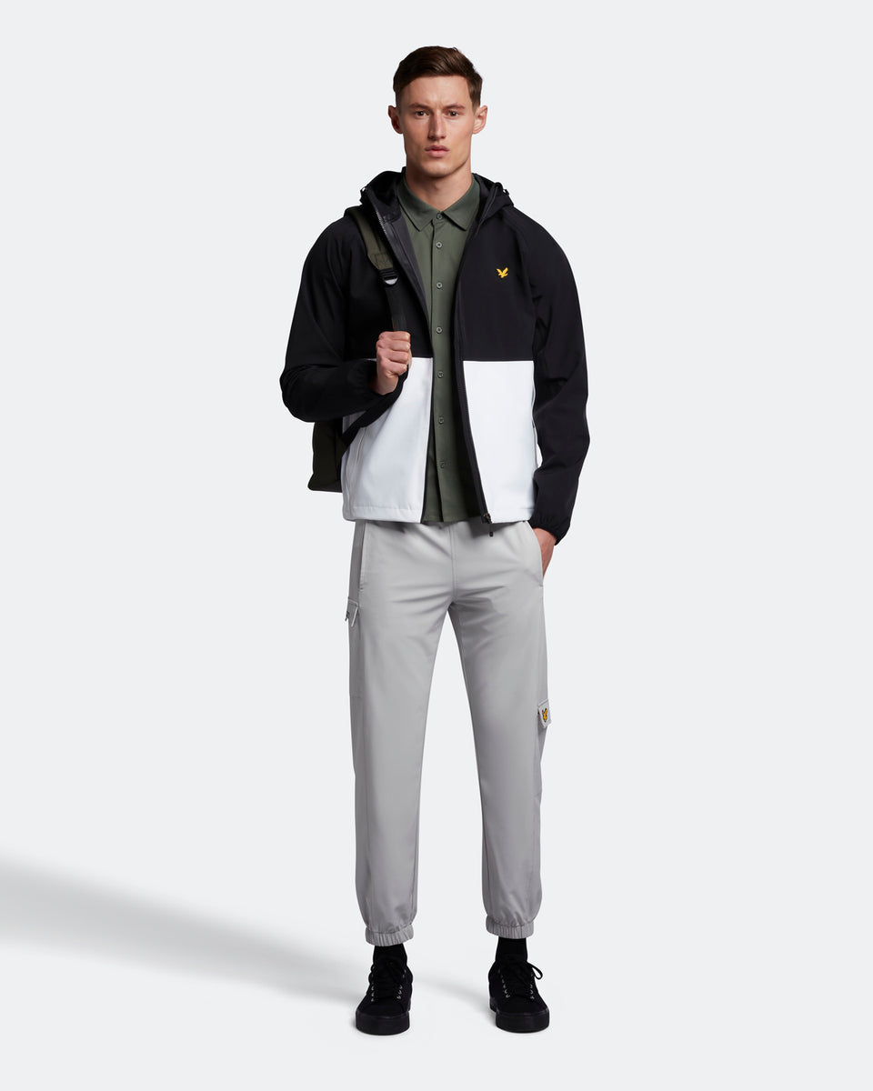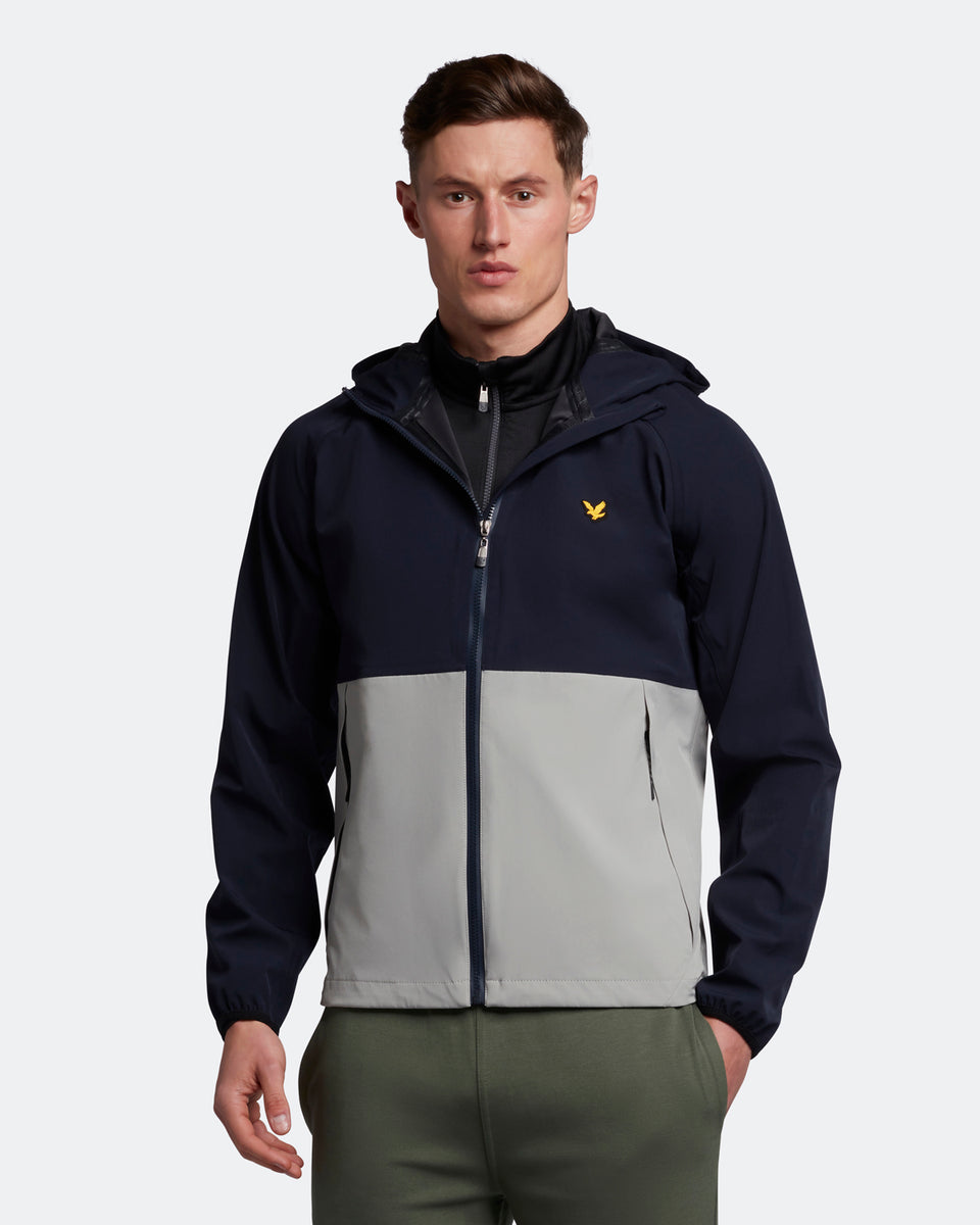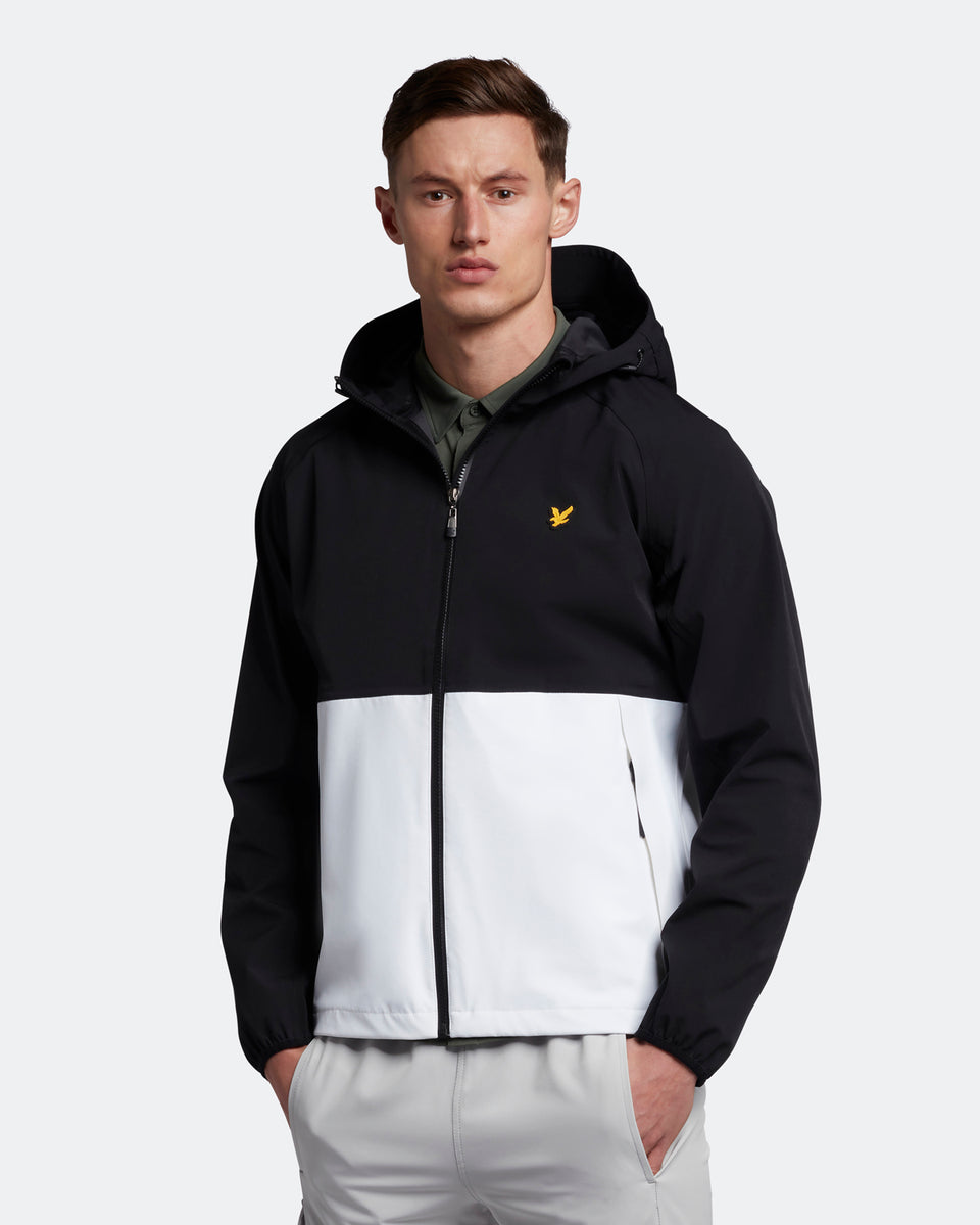 バイカラーのジャケットはアジャスタブルフードでフィット感を高めます。両サイドには大きめなジップポケットを配し、収納力も高いデザインに。バックの中央にブランドロゴプリントを施しています。